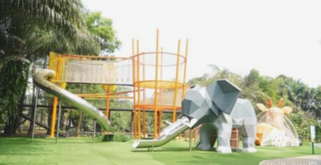 Area ini menjadi favorit anak saya, yaitu playground outdoor yang menawarkan nuansa berbeda dari biasanya. Menurut saya, playground ini cukup menantang adrenalin anak-anak karena mereka harus berjalan dan melewati jaring-jaring tinggi, lalu meluncur dengan perosotan. Desainnya unik dengan warna-warna menarik dan bentuk-bentuk hewan yang menggemaskan. Jangan lupa untuk memakaikan kaus kaki pada Si Kecil agar kakinya tidak sakit saat bermain ya, Bunda.